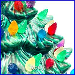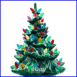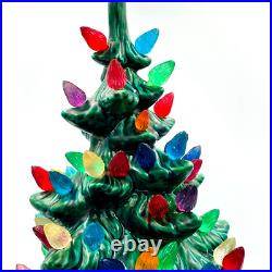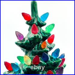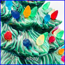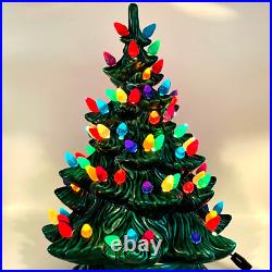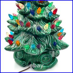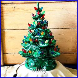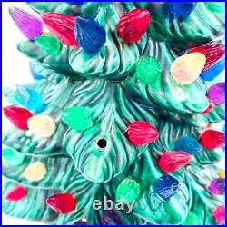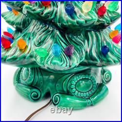 Ceramic tree, with the matching base, is labeled MG-107 and dated 12-03-1970. It stands approximately 19 tall and has the ornate base design. The ceramic tree, lights, and electrical components have been cleaned and checked.