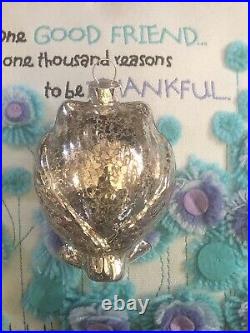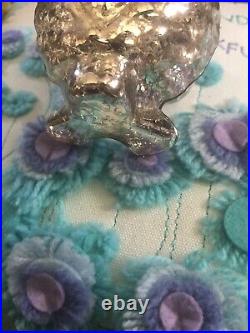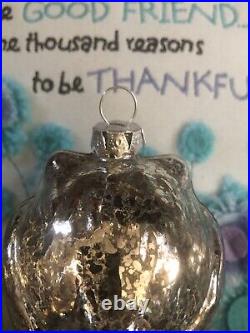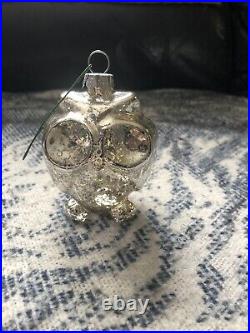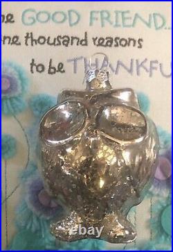 Glass Owl Vintage Christmas Ornament Mint Condition Shiny Silver.