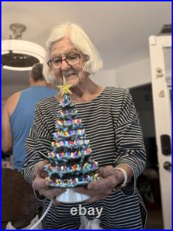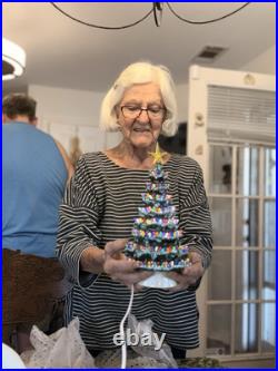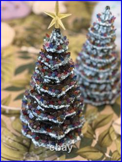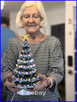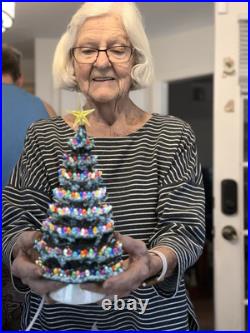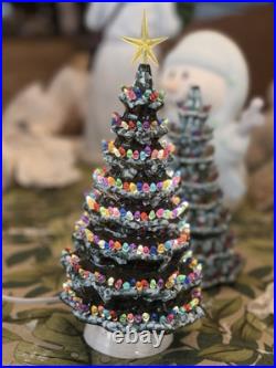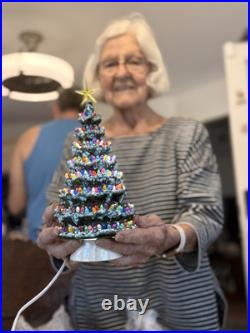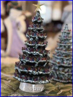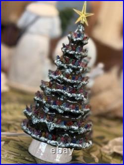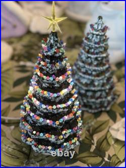 Celebrate the holiday season with this beautiful vintage Duncan Ceramic Christmas Tree. This 11-inch tall tree features a colorful design with a multicolor scheme that will add a touch of seasonal cheer to any room. Made from high-quality ceramic, this artificial tree is carefully handmade with attention to detail, ensuring that it will remain a cherished part of your holiday decor for years to come.