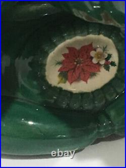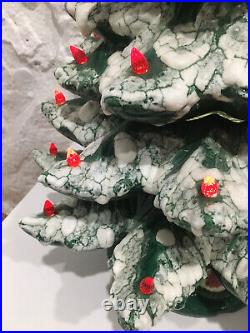 Vintage mid-century Atlantic lighted ceramic christmas tree. Stands 23" tall and 16" wide at the base. It is missing the top star and two of the red lights. Great condition, a couple paint flecks of the underside of base as shown, not seen when tree is in place.