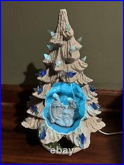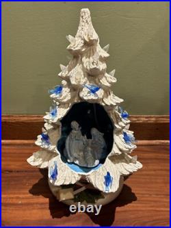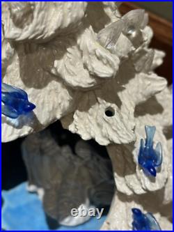 Tree in good preowned condition. Tree is approximately 13.5 tall. It is missing the top light and also 1 blue bird. See all photos closely for condition!