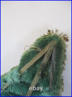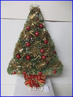 Outrageously Fabulous Vintage Wall Hanging Christmas Tree. 16"T x 11 1/2"W, decorated with starburst, plastic musical instruments, glass balls, and glittered tips. Of brush tree material (see back). Lays flat against wall, base is wood. 99% of what we sell is old...