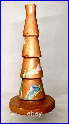For your consideration we have a hard to find Roseville Futura tan Christmas Tree Vase. Ca; 1920's vintage, this stylized Art Deco vase is in very good shape; no chips or cracks with some small glaze misses at its' base. Measuring 10.5 in height. T is unmarked but is pictured in the Roseville guid books a #390-10.