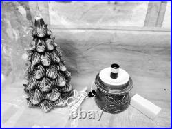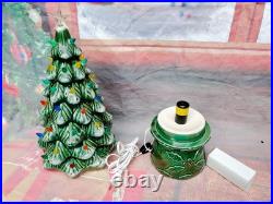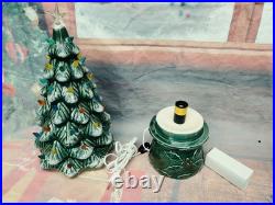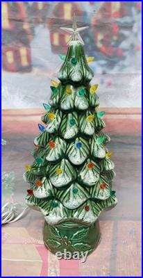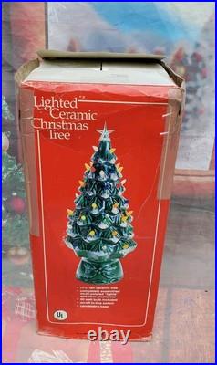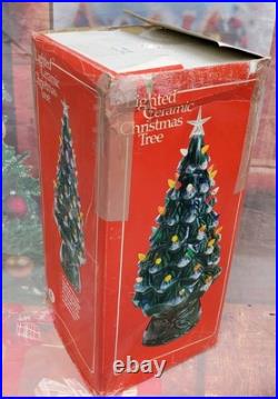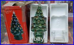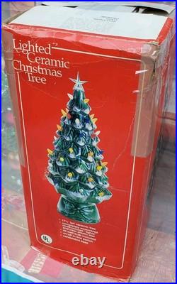 Vintage 17 Ceramic Lighted Christmas Tree With Holly Base In Original Box