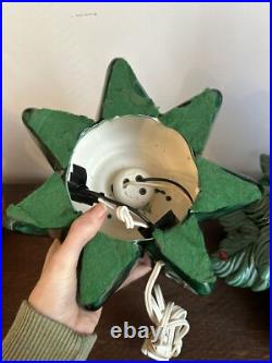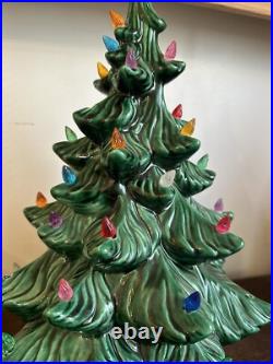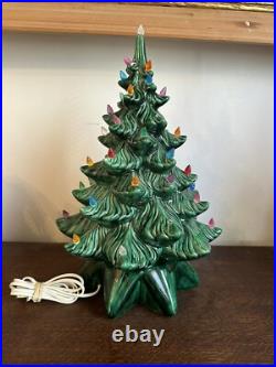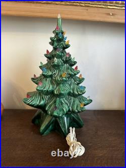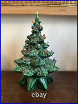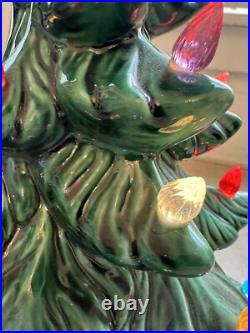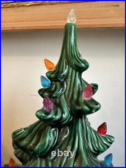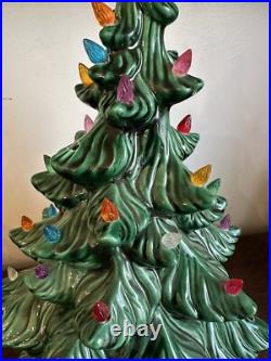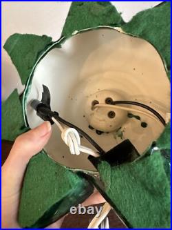 There is a small knick on base which is covered by the tree! Works great but possibly been rewired on the inner guts. A few of the little colorful pegs are missing but these are easily replaced.