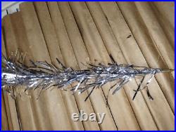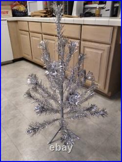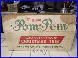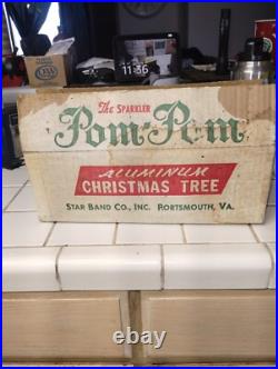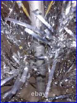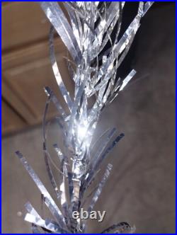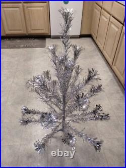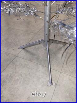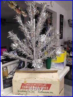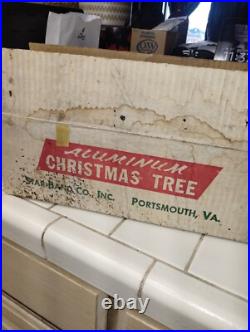 It comes with its original box, adding to its collectible value as a piece from the 1960s. Perfect for adding a touch of retro charm to holiday celebrations, this aluminum Christmas tree evokes a nostalgic feel from a bygone era.