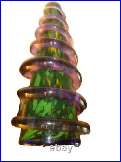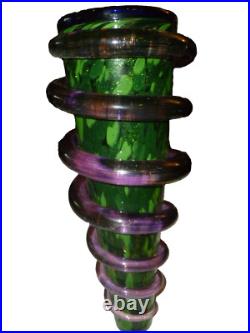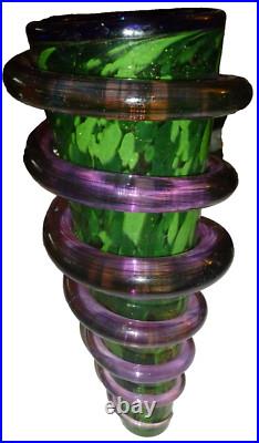 Vintage 1991 Signed Massive Art Glass Vase Coil Snake Wrap Christmas Tree 18. Tiny chip or heat deffect on coil.