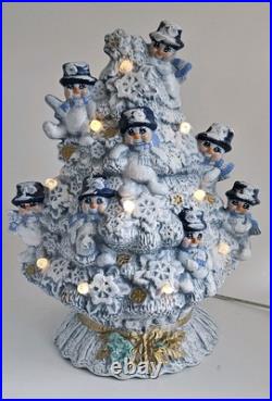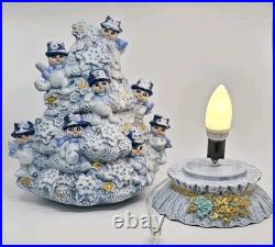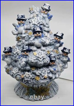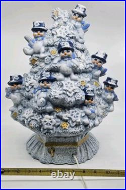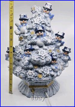Vintage 2pc Ceramic Snowman Christmas Tree with Lights/Music Box 16H X 12W Rare