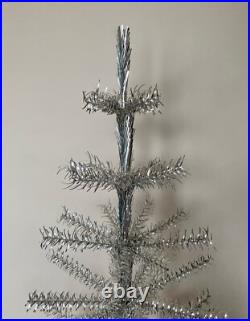 Vintage shiny Silver Christmas tree in original box, Retro Christmas tree. Vintage Silver Tinsel (not real aluminum). Made in USSR, 1985 -1990 years.