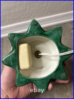 This vintage Atlantic Mold Ceramic Christmas Tree stands at 13 inches tall and features a classic green design, making it perfect for the holiday season. It includes a music box base for added charm and nostalgia. Manufactured in 1972, this tree encapsulates the Christmas theme and is a beloved collectible item from the 1970s. Made of ceramic, this tree is a timeless piece that adds a touch of vintage flair to any holiday decor.