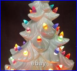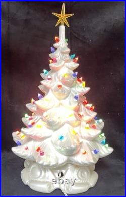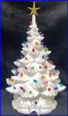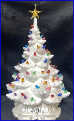 VINTAGE ATLANTIC MOLD CERAMIC CHRISTMAS TREE WithLIGHTS & LIGHTED BASE PEARL