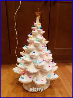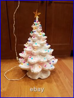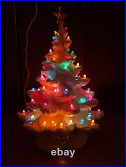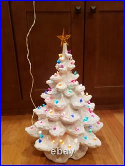 Beautiful Vintage Atlantic Mold Ceramic Christmas tree. The date on the mold is 1974 and tree actually produced and dated 1977. The tree itself is light off white and has white'snow' on the tips of each branch.