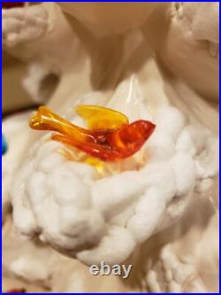 The tree is 22.5' high, including the plastic star at the top and measures 11 across at the widest point. The base has a working music box. The tree comes with all plastic "lights" and some plastic birds that fit into the drilled holes. The electric light base works and has a switch within the electric cord. It would be a wonderful addition to your holiday décor!
