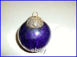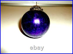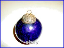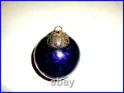 Vintage BLUE Glass 3 Heavy German Kugel Christmas Ornament ORIGINAL BRASS CAP