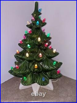 Vintage Ceramic Christmas Tree Lighted 16.5 Tall white star base