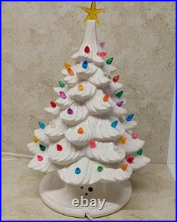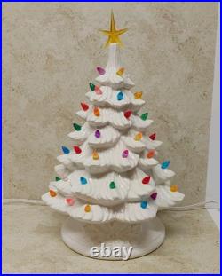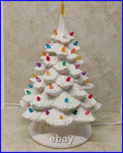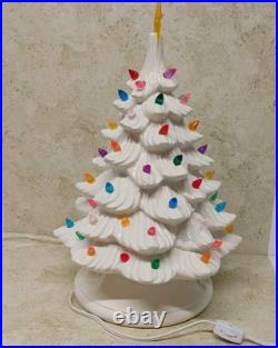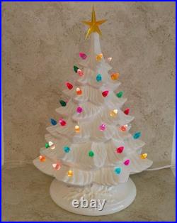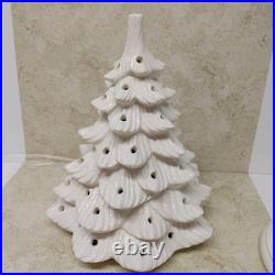 Vintage Ceramic Lighted Christmas Tree With Base White Works