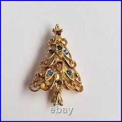 Vintage Christmas Tree Simulated Multi Stone Unisex Brooch Pin Silver925