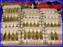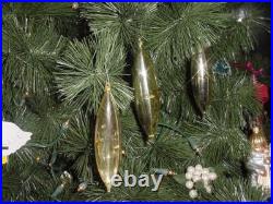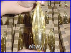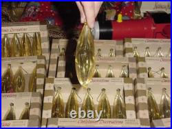 I'm officially dating these pre-1963 as the address on the boxes does not include a zip code. Since the old silver colored aluminum tree got tossed back in the 60's, these have been in long term storage. These all came with hooks and all are included minus one. It was very difficult to photograph these but if you look close, they are clear on one side and solid gold on the backside. They also have two (2) elongated stars formed into the front and backside of each ornament (one front, one back).