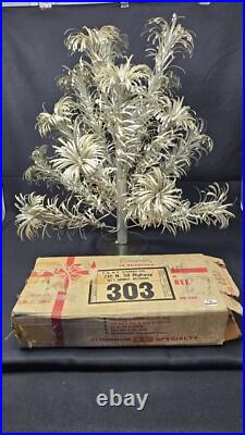 Vintage Evergleam 2ft Aluminum Christmas Tree Pom Pom Fountain With Box READ