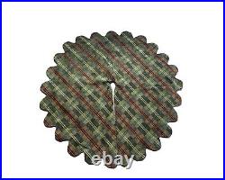 Vintage Handmade Christmas Tree Skirt Rare Plaid Chenille Knit Green Scalloped. Excellent pre-owned, vintage condition- no significant imperfections, with very light evidence of use. A rare and handmade Christmas Tree skirt in a double-sided, medium-weight fabric. Multicolored with a green base, featuring plaid/tartan pattern including red, gold, blue, and brown-green.