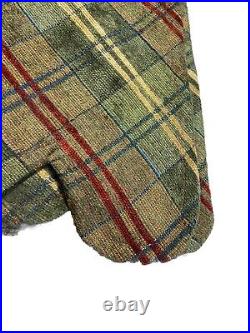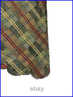 Vintage Handmade Christmas Tree Skirt Rare Plaid Chenille Knit Green Scalloped