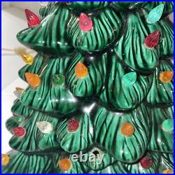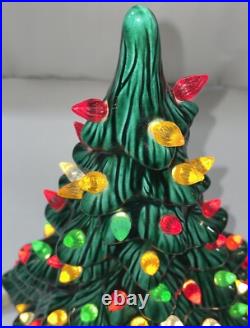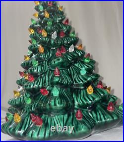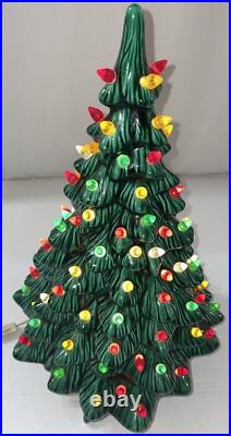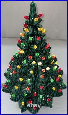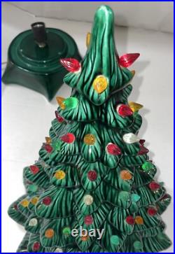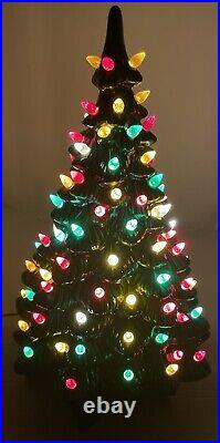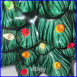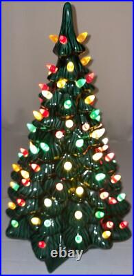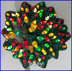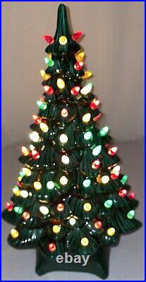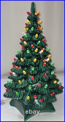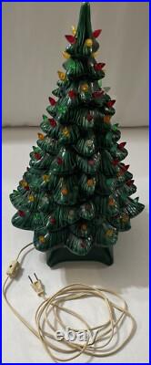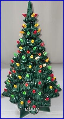 This beautiful vintage ceramic Christmas tree from Holland Mold is a charming addition to any holiday collection. Standing at 19 inches tall with a star shaped base included, this artificial tree features a beautiful green color and is adorned with festive lights that will brighten up any room.