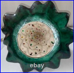 Crafted in the United States during the 1970s, this handmade tree is a unique piece that will add a touch of seasonal warmth to your home. Whether you're a collector or simply looking for a festive decoration, this Holland Mold ceramic Christmas tree is sure to delight. The Signature on bottom says "Dorthy Tyler 1973" and it is missing one light and one has been replaced so there is one odd pink light but it's not too noticeable when on. I just turn the side with the one missing to the back and you never even notice. Several of the bulbs are lose and just sitting in the holes.They could use to be re-glued. No chips or breaks in any visible areas on the tree top, branches, or base. This piece is in excellent condition for its age. Please see pics for more details. Thanks and have a great day!