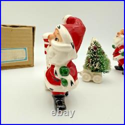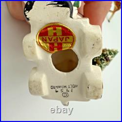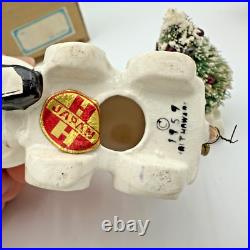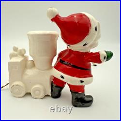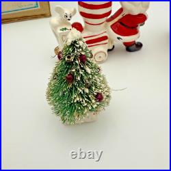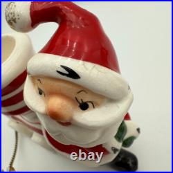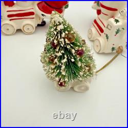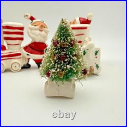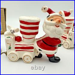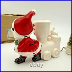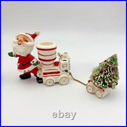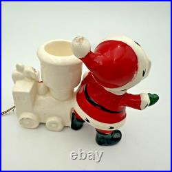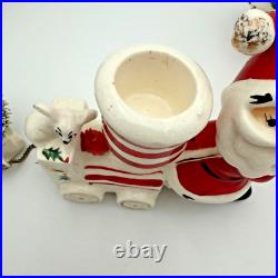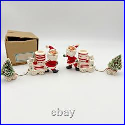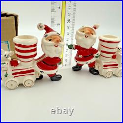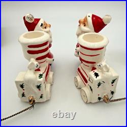 Vintage Holt Howard Christmas Tree Santa Train Mouse Candle Holder Pair Set 1959. Residue from candles in candle holders.