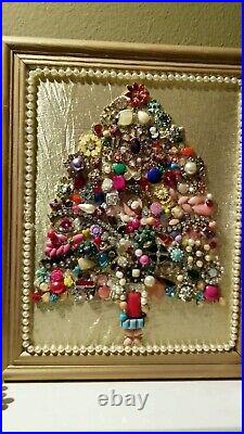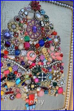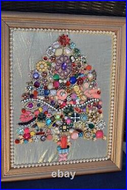 Vintage Jewelry Encrusted OOAK Christmas Tree Framed Art 11 X 14 Maximum Bling