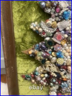 The Vintage Jeweled Christmas Tree in a Wood Frame is a charming and nostalgic holiday collectible perfect for celebrating the Christmas season. Handcrafted with attention to detail, this 14"x19" piece features a festive Christmas tree design adorned with sparkling jewels and intricate woodwork. The vintage look adds a touch of nostalgia to any holiday decor, making it a unique and special addition to any Christmas display.