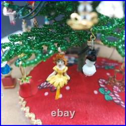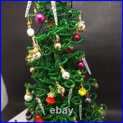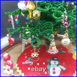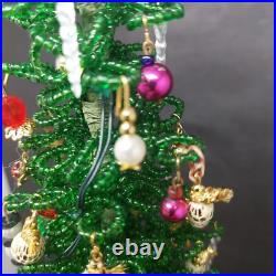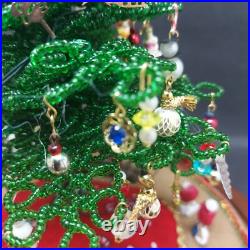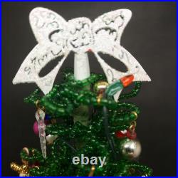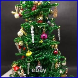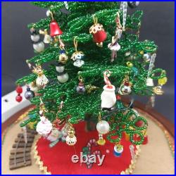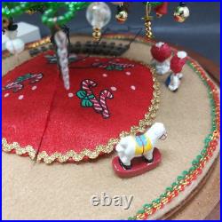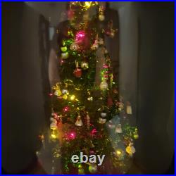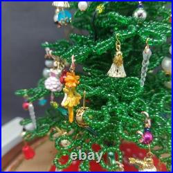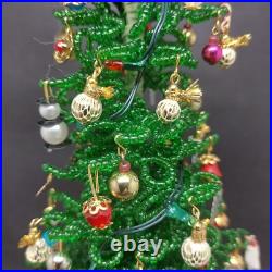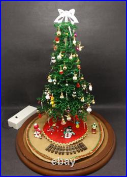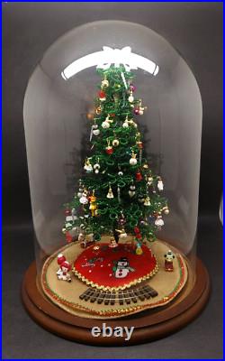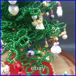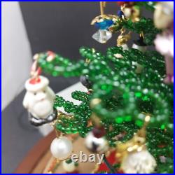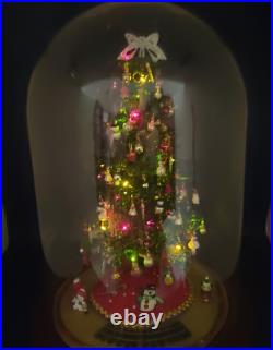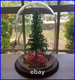 Vintage Lighted Westrim Beaded Christmas Tree Ornaments Wood Base Glass Dome. Glass bell jar is approx.