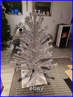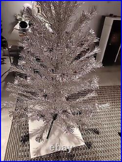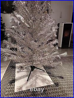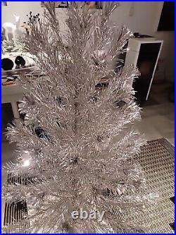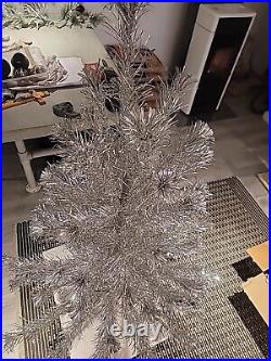 VINTAGE MCM ALUMINUM CHRISTMAS TREE, 6 FT, 82 BRANCHES (POM POM) With Arcade Stand