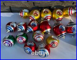 Vintage Mercury Glass Indent Striped Christmas Tree Ornaments Lot Of 26 Assorted