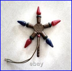 The star shape, intricately designed with vibrant multicolor lights, is sure to become the focal point of your festive decor. Crafted for those who appreciate the nostalgia of holiday celebrations, this piece features a single multicolor light that illuminates to brighten the top of your Christmas tree. Whether it's for a vintage collector or to add a historical flair to your holiday, this unique item encapsulates the spirit of the season. Make sure to check out our other listings of collectible and vintage items.