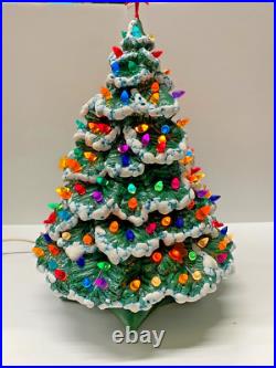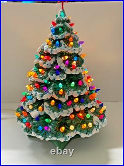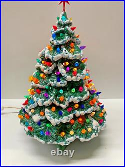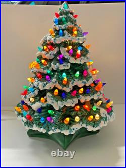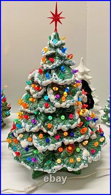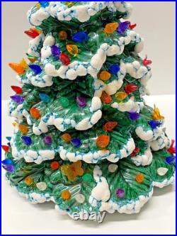 Vintage Nowell Nowell's Mold Snow-Flocked Sierra Spruce Ceramic Christmas Tree w/ Holland Mold Star Base 16.5. Large Nowell Sierra Spruce with snow flocking and a vintage Holland Mold star base. Tree is 16.5 tall sitting on the base. The Nowell tree sits on the Holland star base very well. There is some minor wear to small areas of the snow.