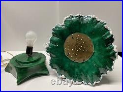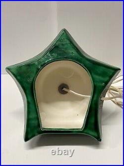 The ceramic star base has one small chip on the underside of one tip - not noticeable when in use. The original wiring and cord is included - the wiring at the bottom of the black lightbulb socket may need to be redone (see photos). No light bulb is included but any LED light bulb will work fine. I will include the plastic multi-colored medium swirl lights/bulbs and the star topper removed inside a baggie.