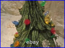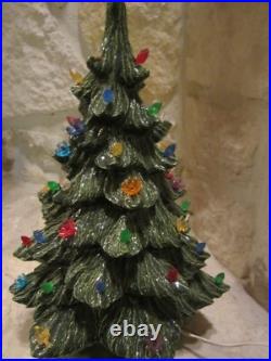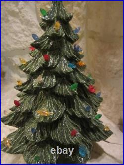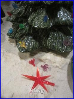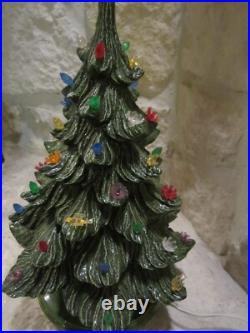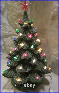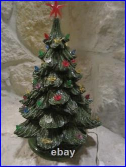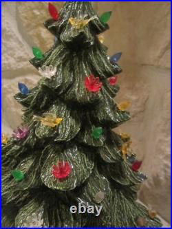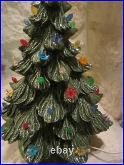 Vintage Nowell's Mold 16 Ceramic Christmas Tree + Base W/birds, flowers+ Bulbs. By itself, the tree is around 14 inches tall, on the base it is 16-inches tall and with the star on top, it is over 18 inches tall.