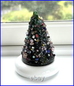 These trees, whether made by Pairpoint or Cape Cod Glass Works, show a great degree of variation in the color, types and density of'ornaments' affixed to the tree. This tree is in very good condition with no chips, cracks, or repairs. Please examine all photos carefully.