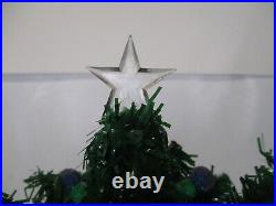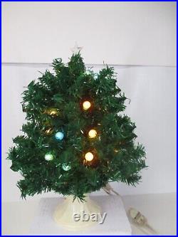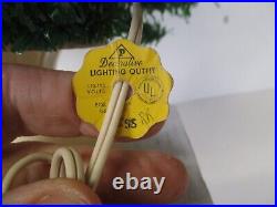 Vintage Paramount Mini Lighted Ice Electric Christmas Tree. 14 1/2"T x 11"W, covered in original green cellophane visca. Base is hard plastic and removes from tree. Has original midget lighted ice bulbs wired into the tree. Good condition, working, all original.