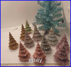 Get your hands on this beautiful tree lot today and add a touch of history to your holiday decor. Eleven assorted colors in all very good in vgc many colors. 1 green all u see included. Very nice lil mica trees.