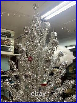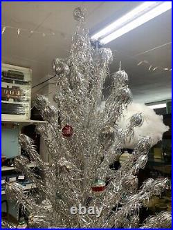 This vintage Christmas tree from Peco is a rare find! Made of aluminum and silver in color, it's perfect for adding a touch of festive charm to your home. Measuring 5'8 in height, it's a great size for any room. The tree is artificial and has a pom pom on top, adding a fun touch to the classic design.