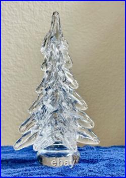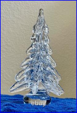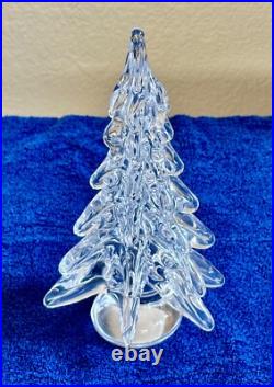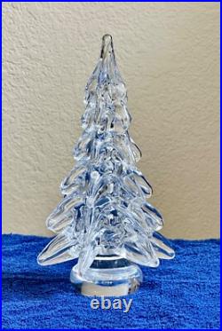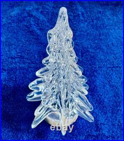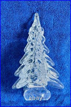 Hard to find vintage Chalet John Riekes lead crystal art glass Christmas tree measuring 8.5 tall. It has six branches and a solid paperweight base. Please note this is a handmade art glass piece and does have some visible inclusions and bubbles. There are some surfaces scratches to the bottom of the base. The original sticker is no longer present.