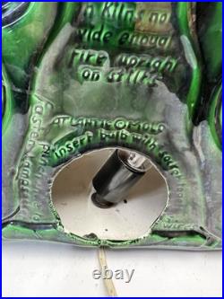 Very rare FLAT BACK/ hanging/shelf/wall variant. Lights up, however bulb mount is loose (see photo) 3 plastic bulbs missing/broken off at top would need to be replaced.