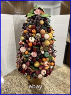 The Vintage Waterford Large Holiday Topiary Decor is a charming Christmas collectible featuring a stunning sugar fruit tree design. Standing at 30 inches tall and 16 inches wide, this piece is perfect for adding a festive touch to your holiday decor. The topiary is intricately crafted and would make a lovely addition to any Christmas display.