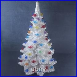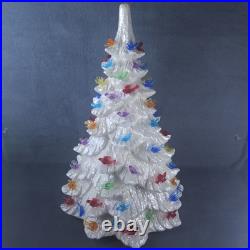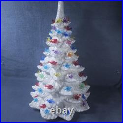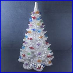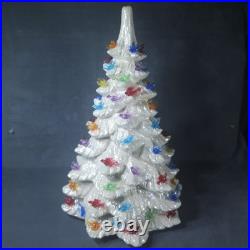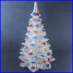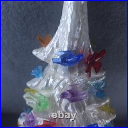 Vintage White Ceramic Christmas Tree with Birds, Iridescent, Pearlescent 14.5. 2 bird tails broken as shown in the photos. Condition is shown in the photos.