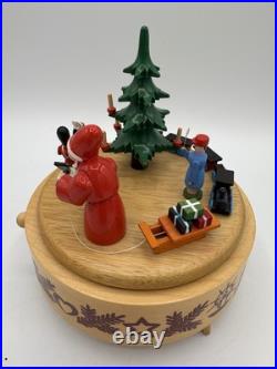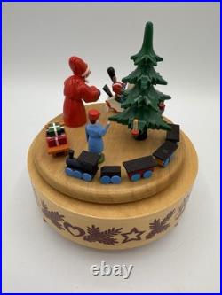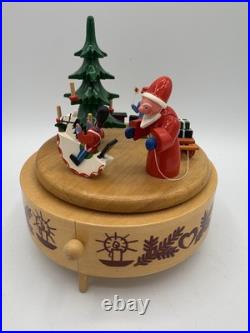 Vintage Wood Germany Erzebirge Christmas Tree Santa Music Box Carousel Works