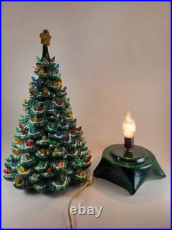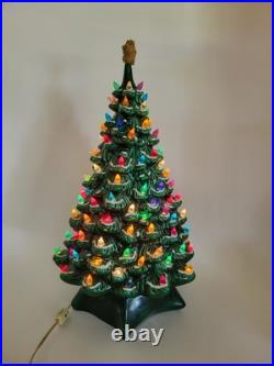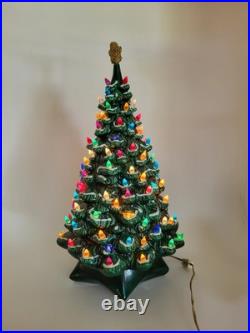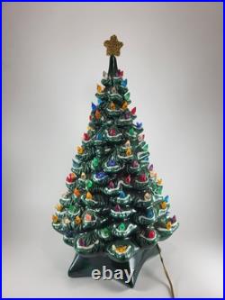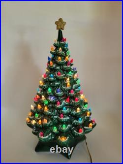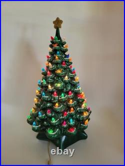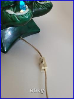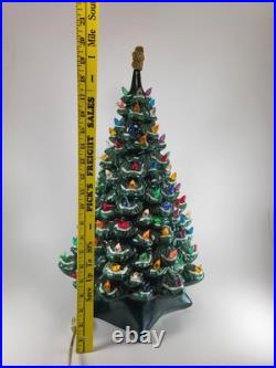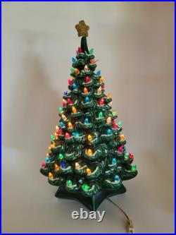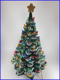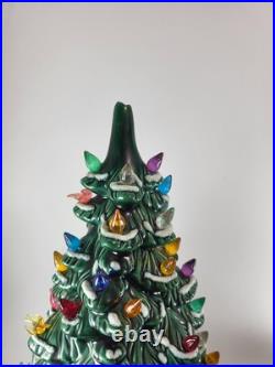 This vintage 22 lighted ceramic Christmas tree is a beautifully decorated table decoration perfect for the holiday season. Handmade with snowy branches and birds, this artificial tree is designed in a green color scheme, adding a touch of nostalgia to your Christmas decor. The intricate details and unique design make it a standout piece for collectors or anyone looking to add a special touch to their holiday celebrations.