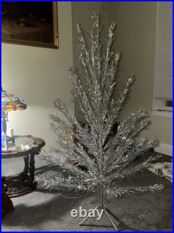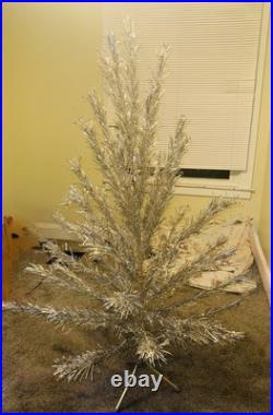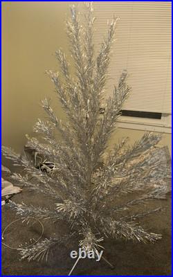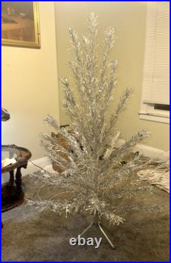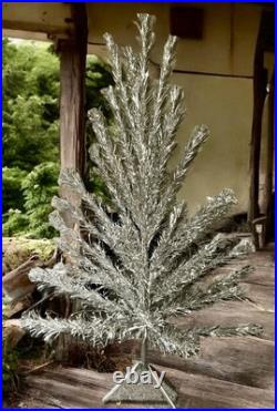 Tree is sturdy and has most of original foil on trunk. The branches are truly still sparkling. The ends of a few are a little crumpled. All in all a fabulous vintage piece.Thanks for shopping small with us!