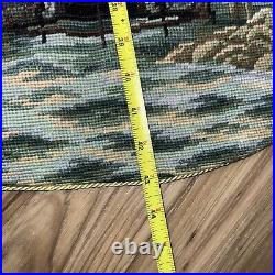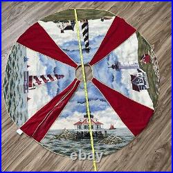 VTG Christmas Tree Skirt Wool Round Nautical Tapestry Needlepoint Lighthouses